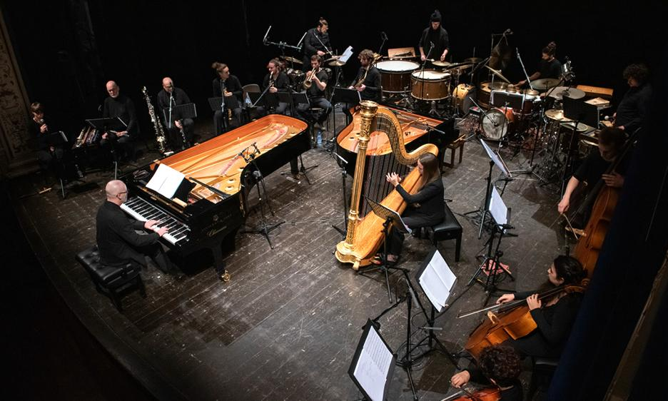 La formazione era in quest'occasione lievemente diversa e ampliata da quindici a diciassette membri; mancava il vibrafono, sostituito da altre percussioni, ed entrava (per metà dell'opera) l'arpa di Stefania Scapin, già presente in altri lavori dell'ensemble; raddoppiava la presenza il contrabbasso con Stefano Zambon accanto a Michele Bondesan. Inoltre, Battaglia si alternava tra un pianoforte e un piano preparato, posti l'uno di fronte all'altro e al centro di un arco formato dai musicisti, al cui apice erano posti i percussionisti Pierluigi Foschi, Giovanni Nardiello, Nicholas Remondino e Giuseppe Sardina , mentre dalla sinistra si disponevano Elsa Martin alla voce e i fiati nell'ordine Stefano Agostini ai flauti, Christian Thoma a oboe, corno inglese e clarinetto basso, Cosimo Fiaschi al sax soprano, Tobia Bondesan al sax contralto, Francesco Panconesi al sax tenore, Ludovico Franco alla tromba e dalla destra l'arpa e gli archi Seyedehsaba Safavi alla viola, Sarvin Asa al violoncello e i contrabbassi.