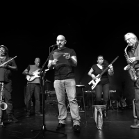 The Red Microphone’s radical poetry and improvisational music draws on the fervent history of free jazz, Left culture, the Beat Generation and New York’s punk underground. The band’s saxophonists—Ras Moshe Burnett and Rocco John Iacovone—intertwine and off-set the pulsating lines of guitarist Dave Ross and bassist Laurie Towers, propelling center the spoken word of John Pietaro. The poetry and prose selections are works of Pietaro as well as masters Bertolt Brecht, Langston Hughes, Amiri and Amina Baraka, John Reed, William Burroughs, Jack Kerouac, Diane Di Prima, Kenneth Fearing, Patti Smith, Walter Lowenfels and others.