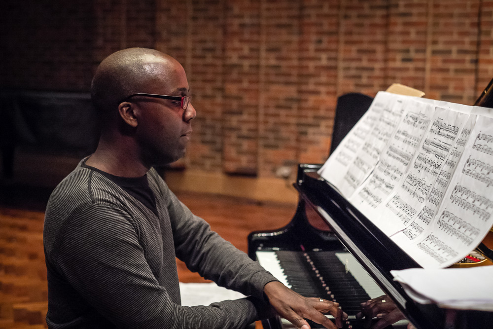 Awared winning jazz pianist Robert Mitchell rehearsing at the Turner Sims Concert Hall in Southampton, England.
