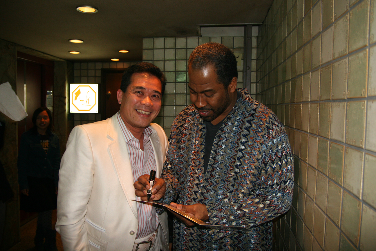Clifton with a fan in japan