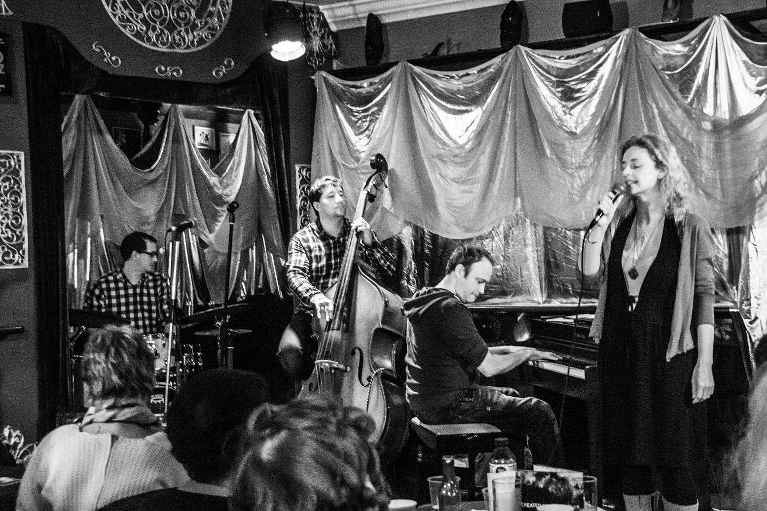 Vocalist Claire Barton performs at Singers Corner in the Everyman Theatre Bar with the Phil Ware Trio (Phil Ware (piano), Dave Redmond (bass), Kevin Brady (drums)).
