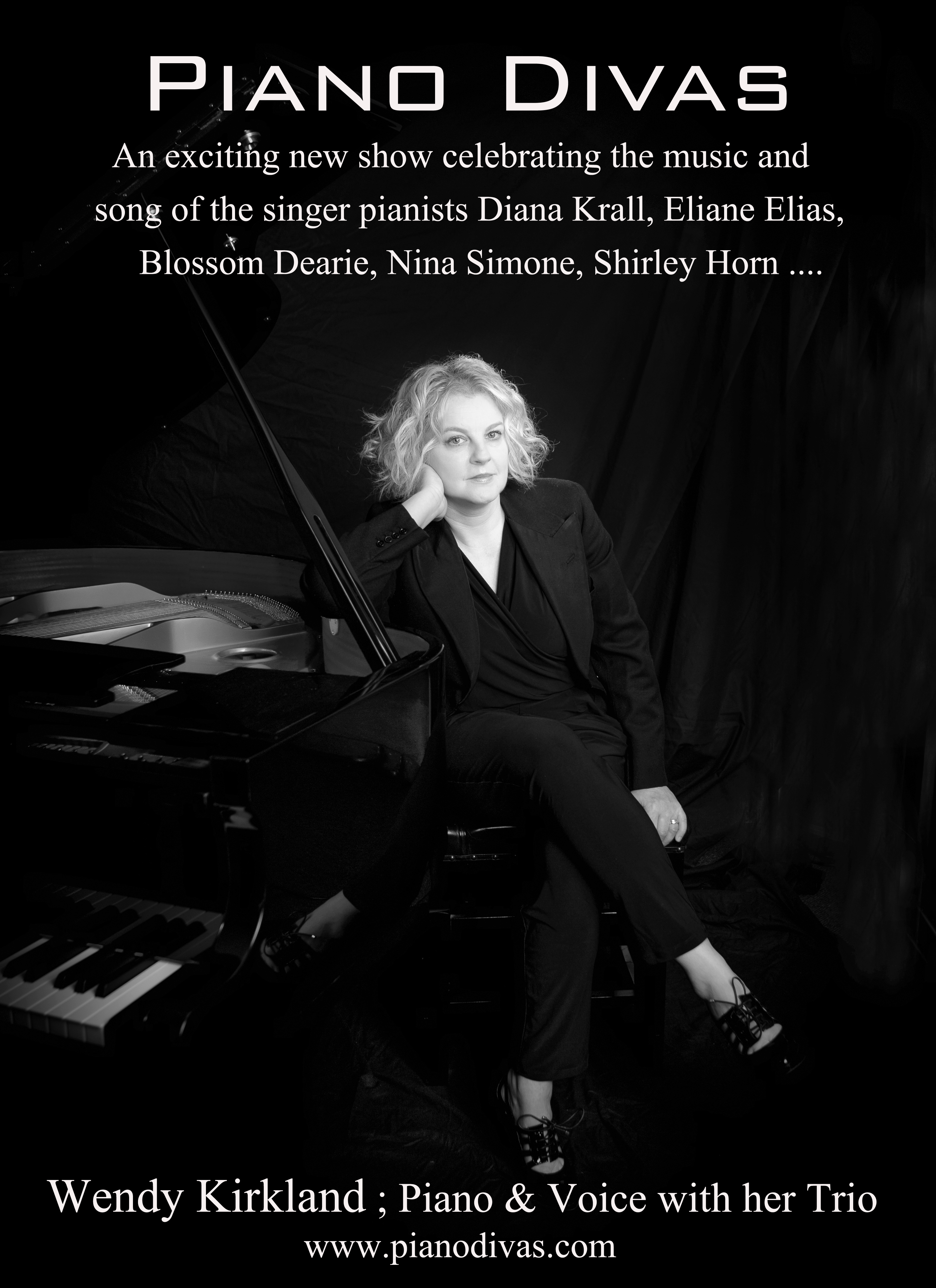 Wendy Kirkland's latest project 'Piano Divas' is wowing UK audiences. Following on from a sell-out tour in Nottinghamshire earlier this year, she is set to play further dates in 2016. The concept of a quartet featuring Wendy Kirkland (piano and voice) was formed in early 2015 to celebrate the singer pianists who have earned their rightful place in jazz history. These include Diana Krall, Eliane Elias, Blossom Dearie and Nina Simone, and also those deserving more attention such as Shirley Horn, Dena Derose, Carol Welsman and Tania Maria. Wendy has been performing on the piano since the age of 10 and singing jazz for 15 years in various ensembles, appearing at jazz clubs and festivals throughout the UK. Wendy’s skilful mastery of keyboard and ability to sing and play simultaneously been likened by one critic to Shirley Horn. A pianist first and foremost, she was persuaded to sing by several fans and never looked back. Wendy is joined by a top class band; Pat Sprakes on guitar, Paul Jefferies on bass and Steve Smith/Clive Loveday on drums. Between them they have worked with UK and international jazz luminaries such as Darius Brubeck, Jim Mullen, Tony Kofi, Karen Sharpe, Phil Robson, Alan Barnes and Roger Beaujolais.